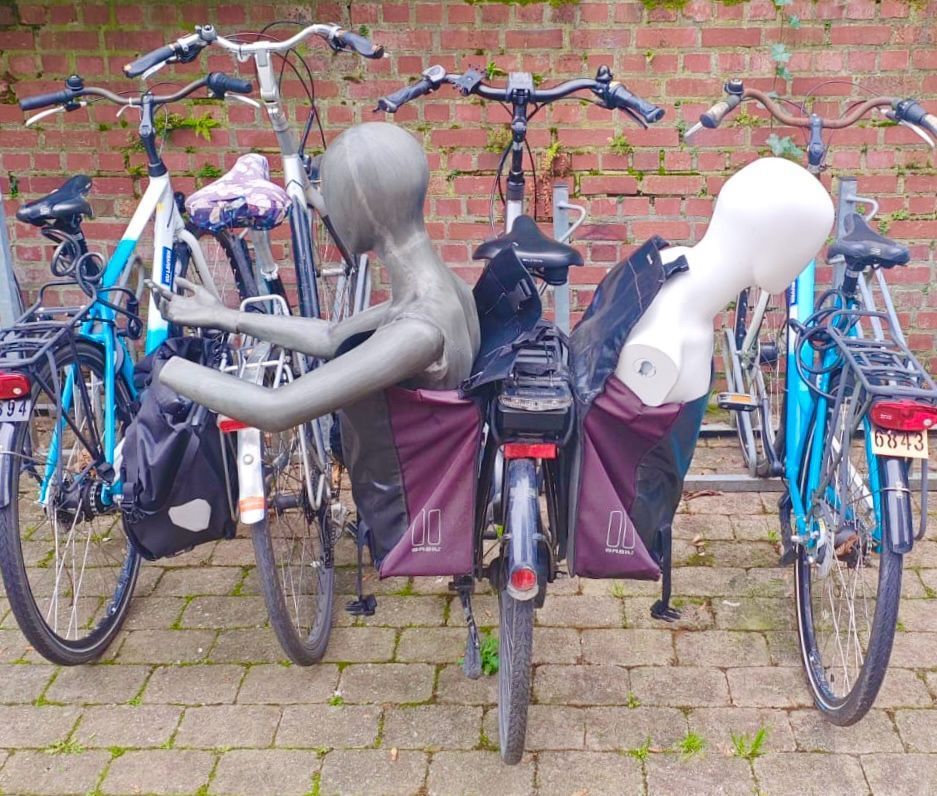A few weeks after returning from the US I and the "Convergences" exhibition was on back on the road again - this time to Leuven, Belgium to take part in the REstART Festival on the Art of Justice, Dialogue and Repair and celebrating 25 Years of the European Forum for Restorative Justice (EFRJ). I am deeply grateful to INNO, Leuven, for the loan of the mannequins which helped bring the exhibition to life. Also, to members of the EFRJ team for their imaginative transportation of them on bicycles which was inspirational!